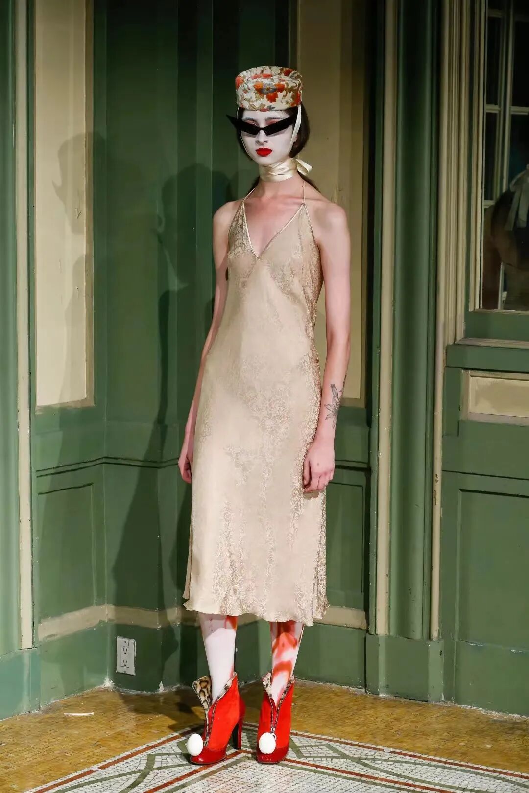 作为时尚DIY品牌小圈子的一员,最破圈的可能就是滩在内衣上的两朵蛋,还有极尽洛可可装饰性的设计细节,对于回收物品,设计师物尽其用后,将透视PVC和树脂再设计与服装和鞋。