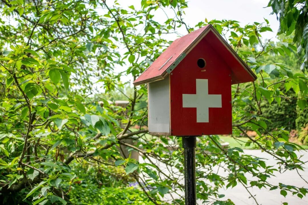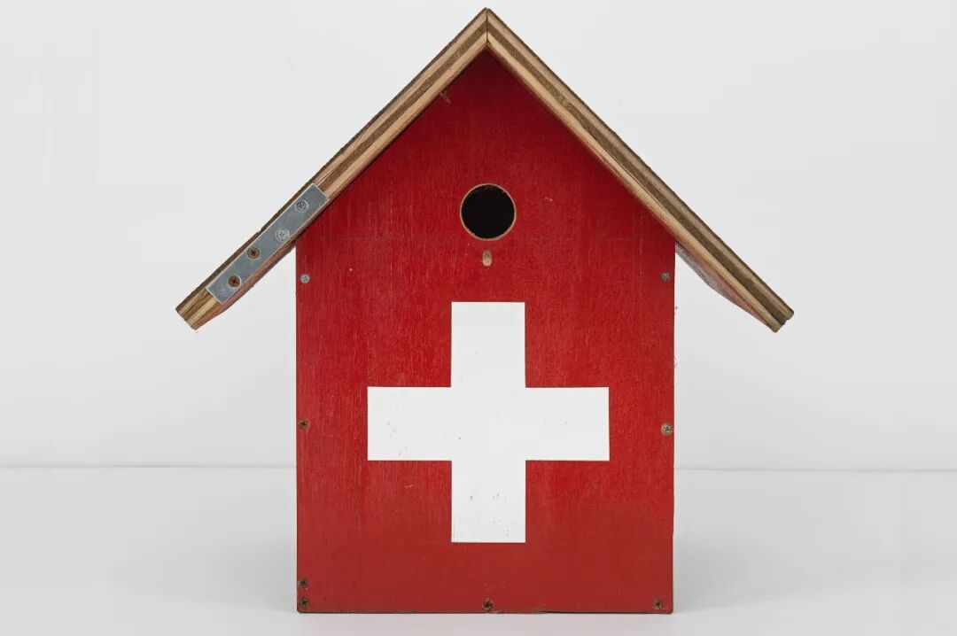 艺术家汤姆·萨克斯(Tom Sachs)以瑞士国旗为图案,思考了陆地边界和国家身份对人类和在其上方飞翔的鸟类的意义。