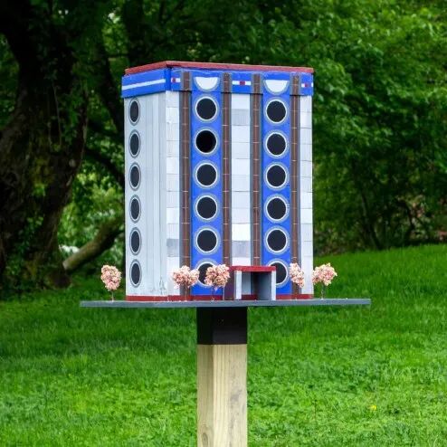 这是一个空中酒店,由错落的房间堆叠而成,为拥有翅膀的尊贵小顾客而设计。