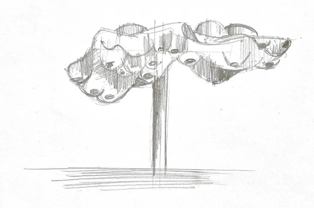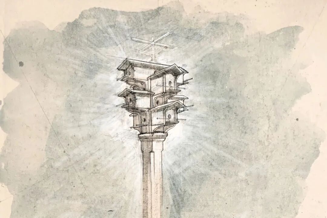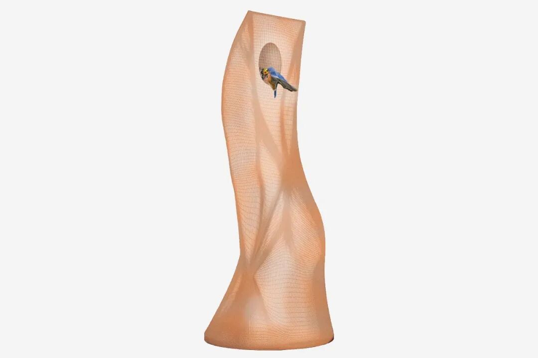 鸟巢的编织纹理和3D打印粘土的纹理有某些共同的地方。用3D打印出的建筑,如同伫立在空间中的婀娜少女,她的头则是鸟类的庇护所。