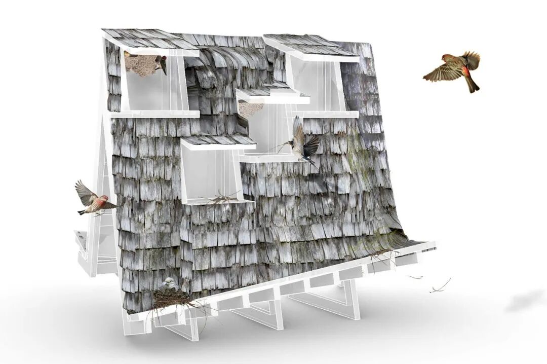 屋顶是鸟儿们嬉笑玩乐的场所,在上面为它们安置避风港。