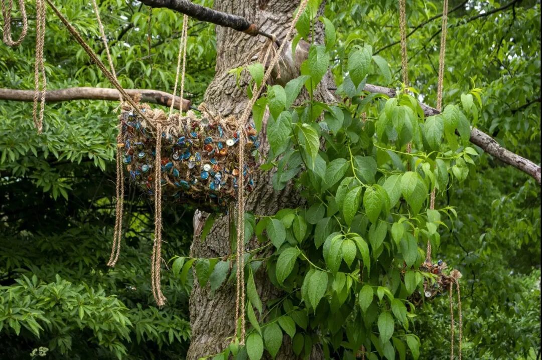 「Oh Robin」鸟舍是艺术家对知更鸟编织鸟巢行为的抽象解释。