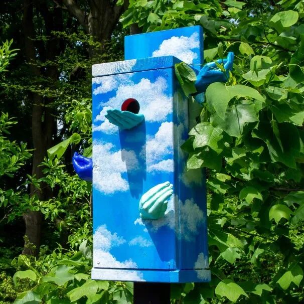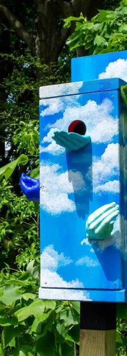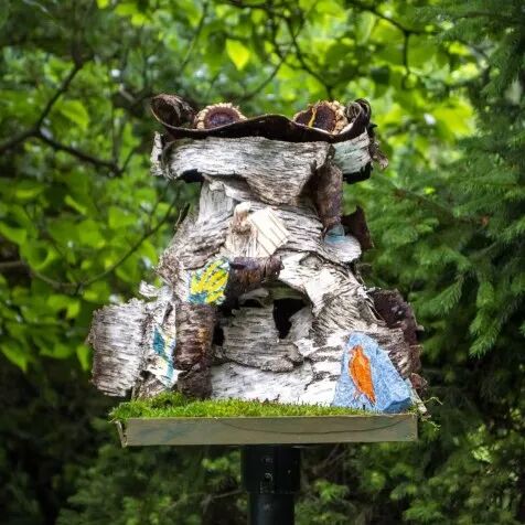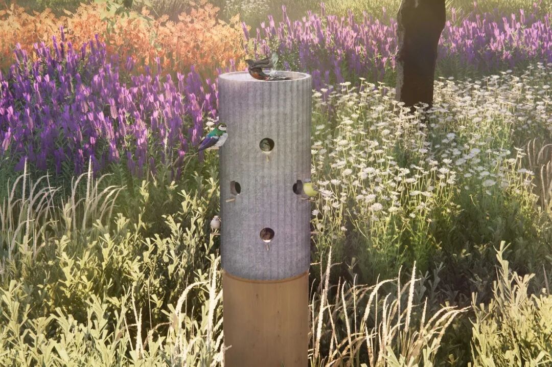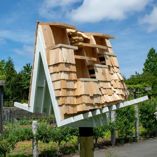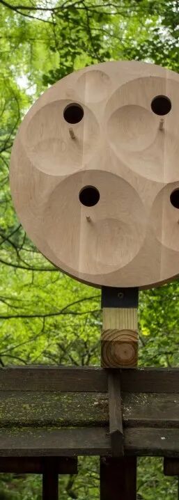 「A Home for Flickers」(闪烁之家)是一个由道格拉斯冷杉和水泥制成的鸟舍,周围环抱着温柔的手,她希望能为鸟儿们提供温暖的庇护所。“我们有责任为除人类以外的邻居创造更多的生存空间。”