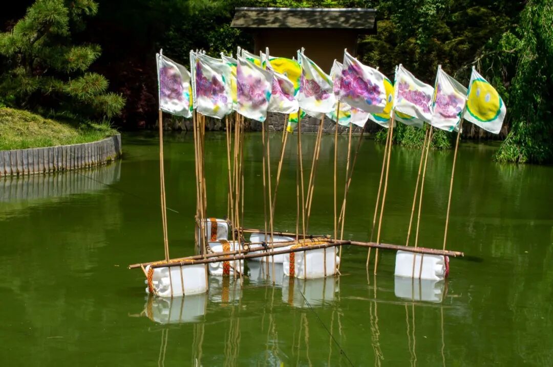 浮在水面上的平台,由工作室的塑料制作完成,以减少在创作过程中产生的废物。