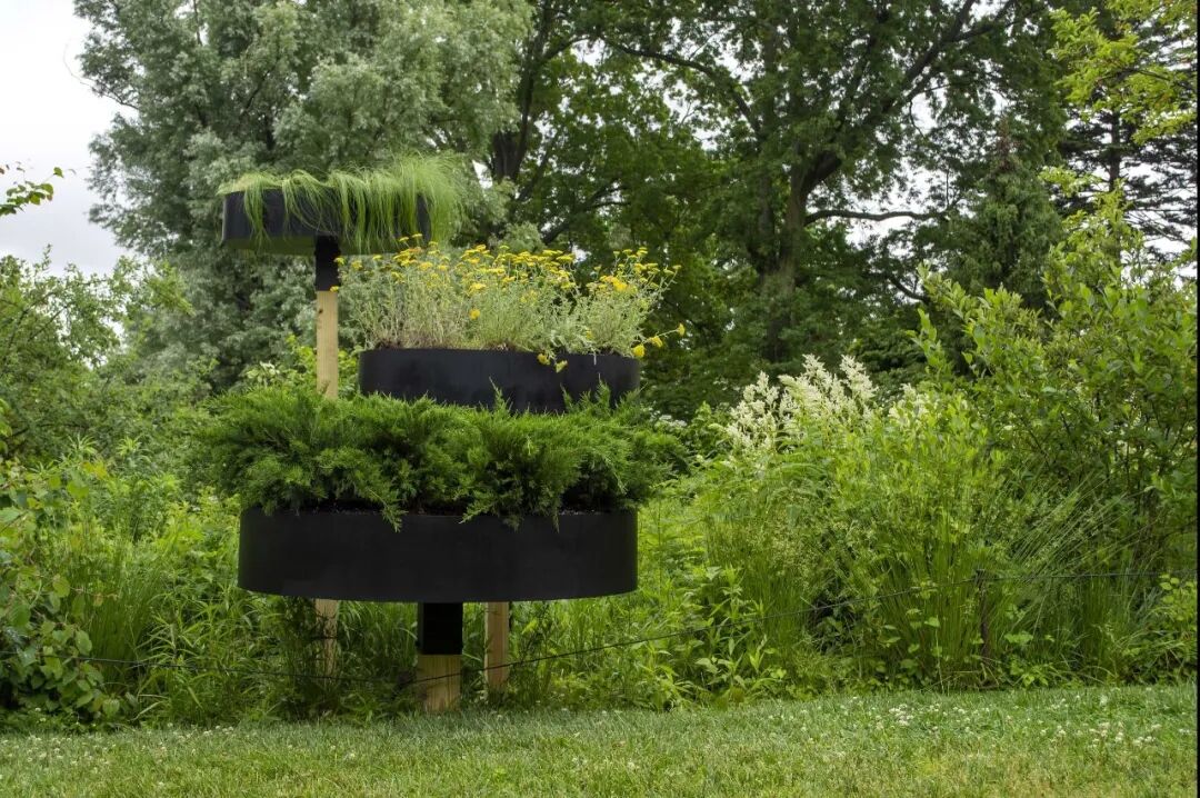 艺术家艾米·里特(Amy Ritter)建造鸟舍的目标是为鸟类创造一个保护性的着陆场所。种植在三个大型高架平台上的草、花和灌木充当“安全围栏”,保护鸟类免受捕食者和人类的伤害。