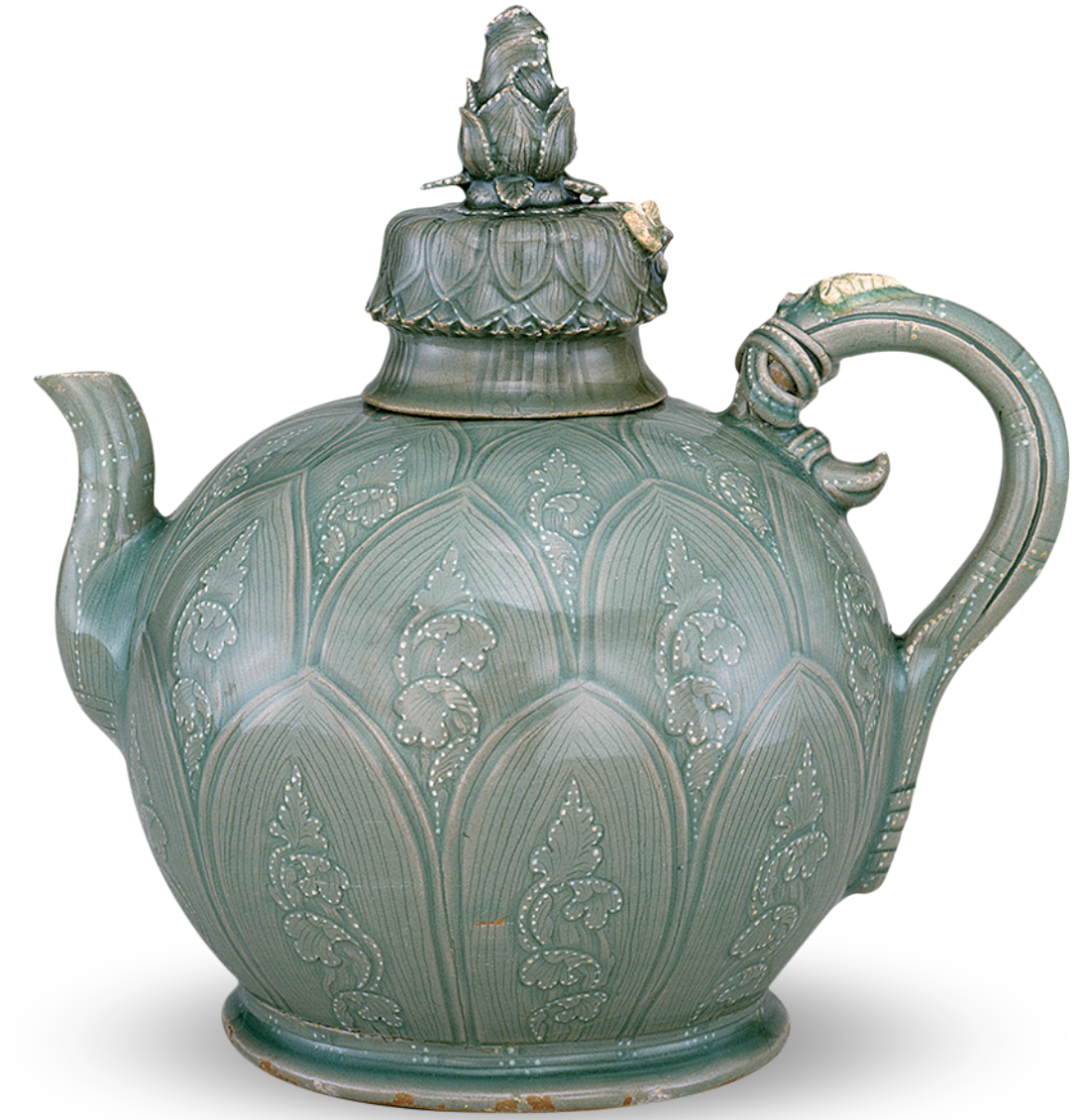 布鲁克林博物馆最著名的朝鲜艺术杰作当属高丽王朝时代(公元918~1392年)的一件青瓷阴刻莲瓣纹执壶。