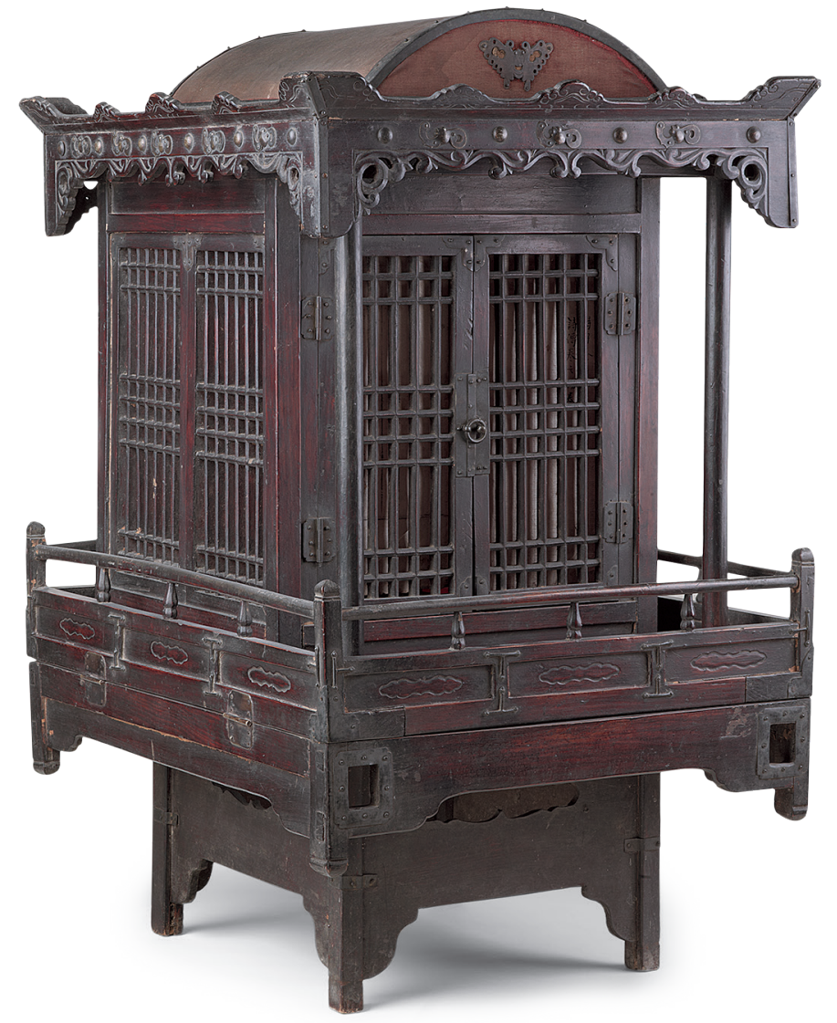 其中的一顶袖珍轿子与朝鲜时代末期贵族女性乘坐的轿子十分相似,用于在葬礼中运送灵位。