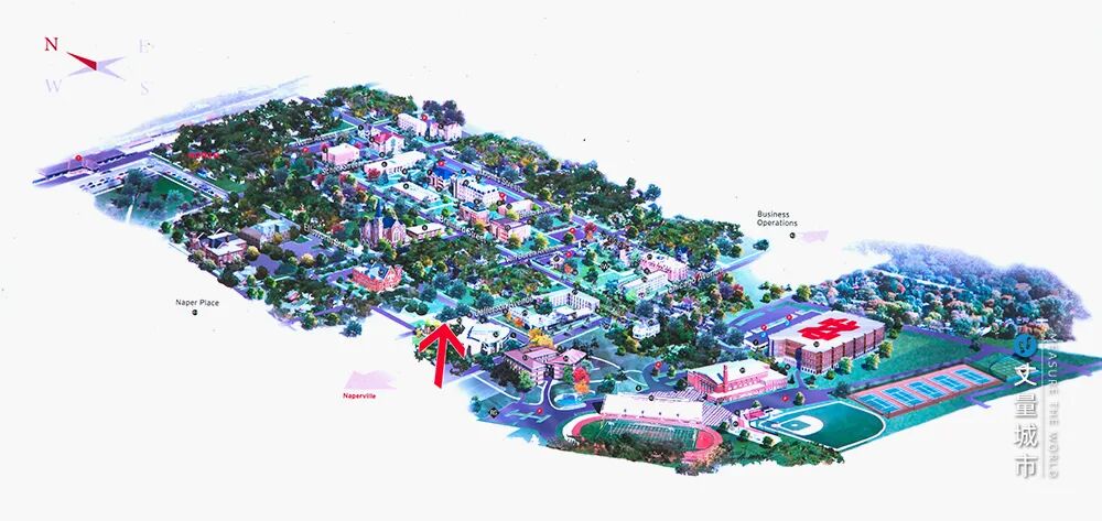 ▼ 内珀维尔中心城区示意(拍摄于内珀维尔导引系统)