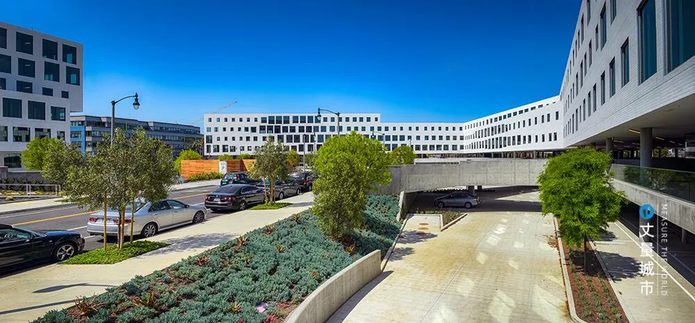 ▼ Playa Vista社区沿河景观带,突出绿色沿河景观带
