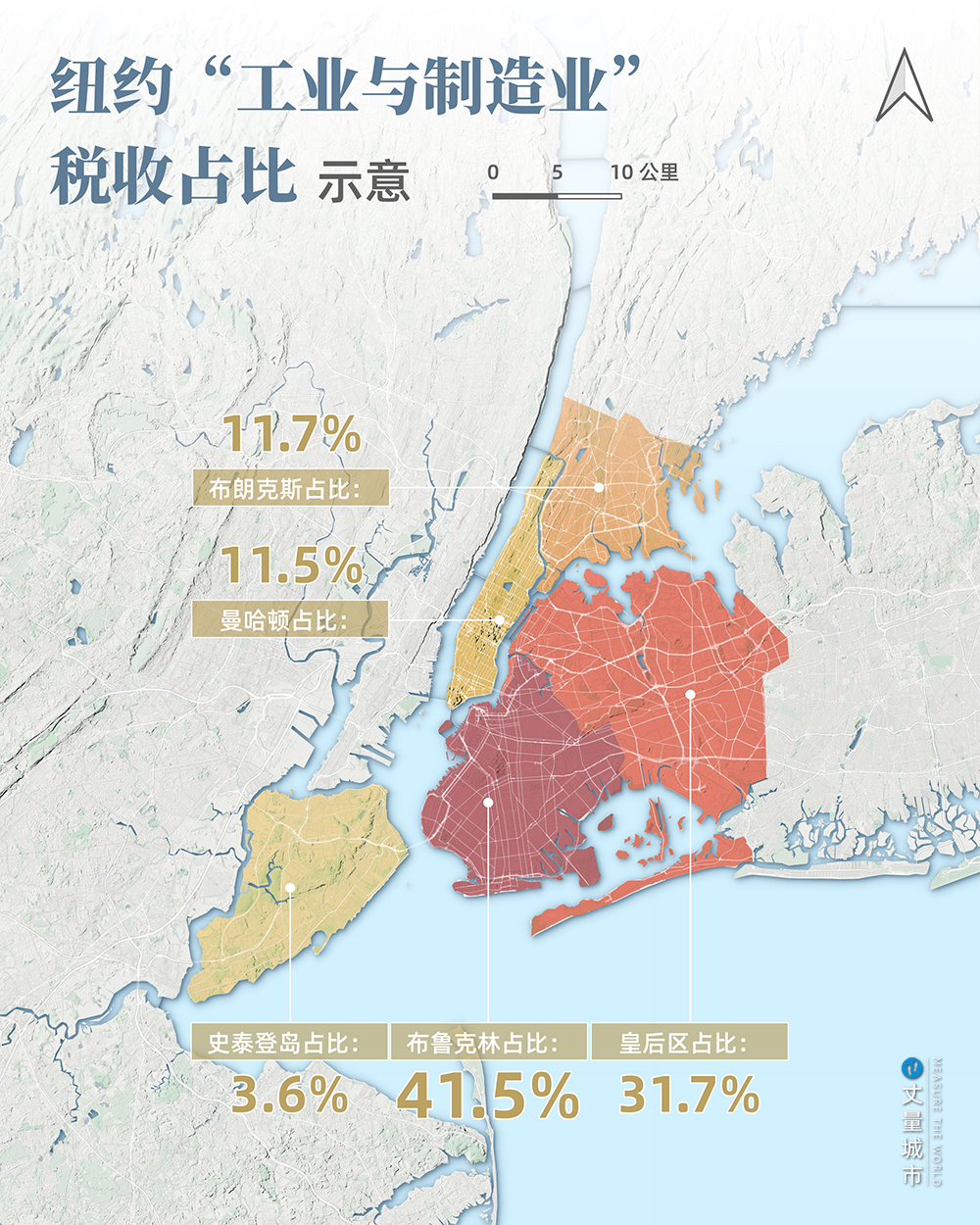 ▼ 布鲁克林区在整个纽约市中的制造业占比最高