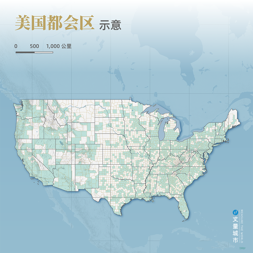 根据OMB定义:大都市统计区(MSA)是一个地理区域,其核心人口密度相对较高,整个地区的经济联系密切;综合统计区(CSA)则由具有通勤模式衡量的经济联系的相邻大都市和小都市区的各种组合。