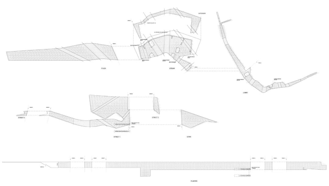 同时,沿着街道和入口立面设置的店面展厅,让人们可以从人行道或广场向内观看,邀请路人体验艺术