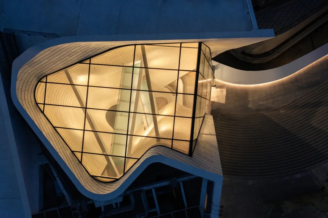 表演及教育大厅是整座博物馆公共空间的焦点。它悬停于高耸、明亮的入口大厅中庭之上,营造出了一种鼓舞人心、充满活力的空间氛围。