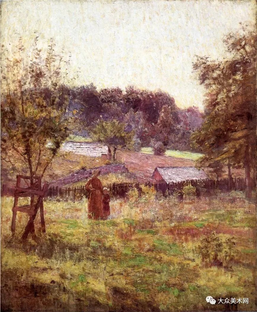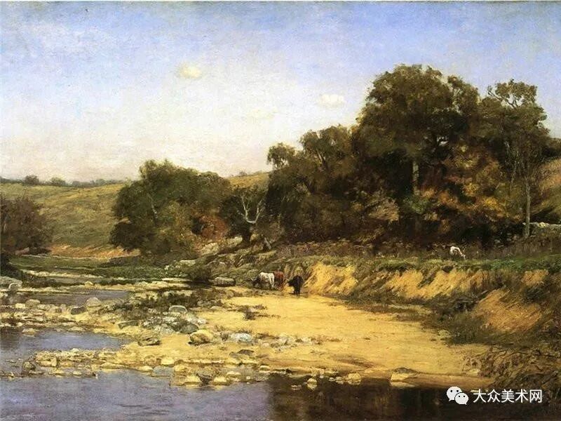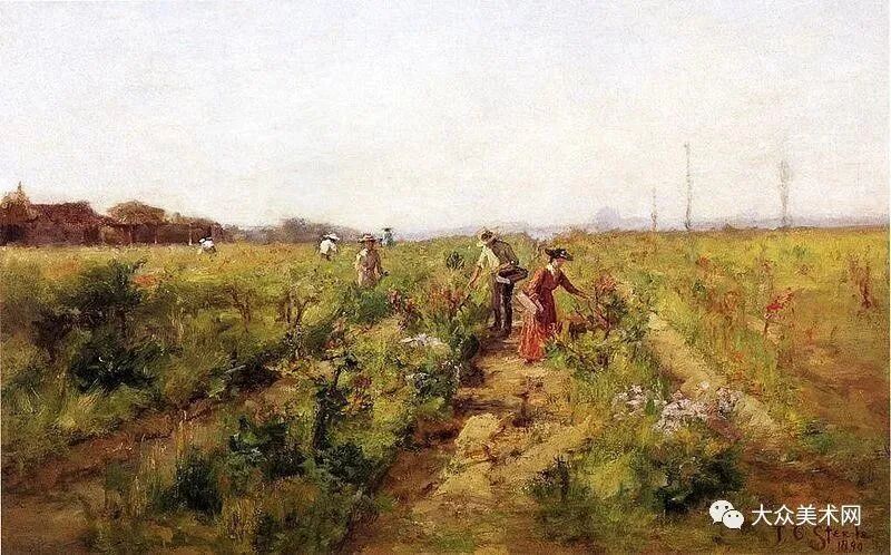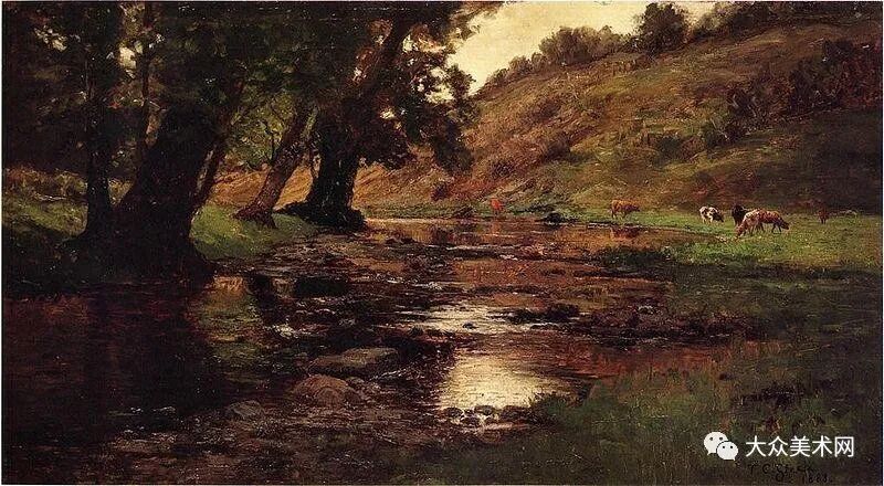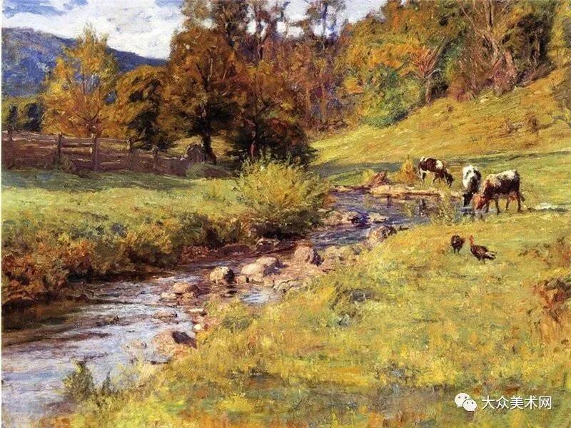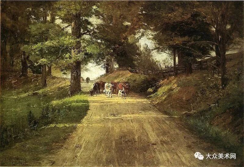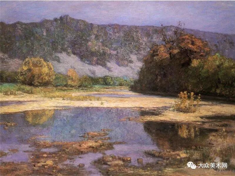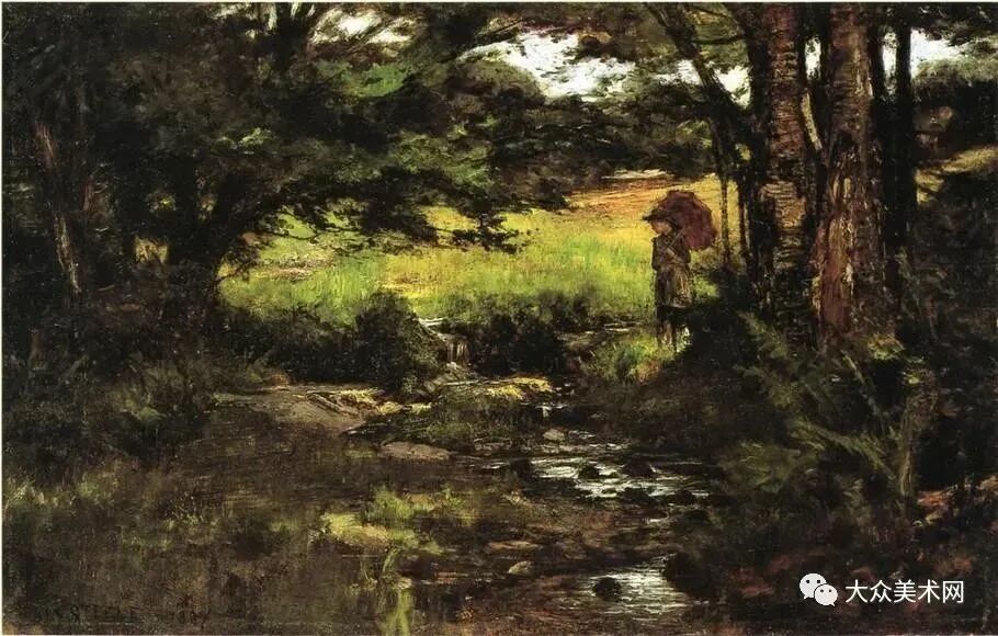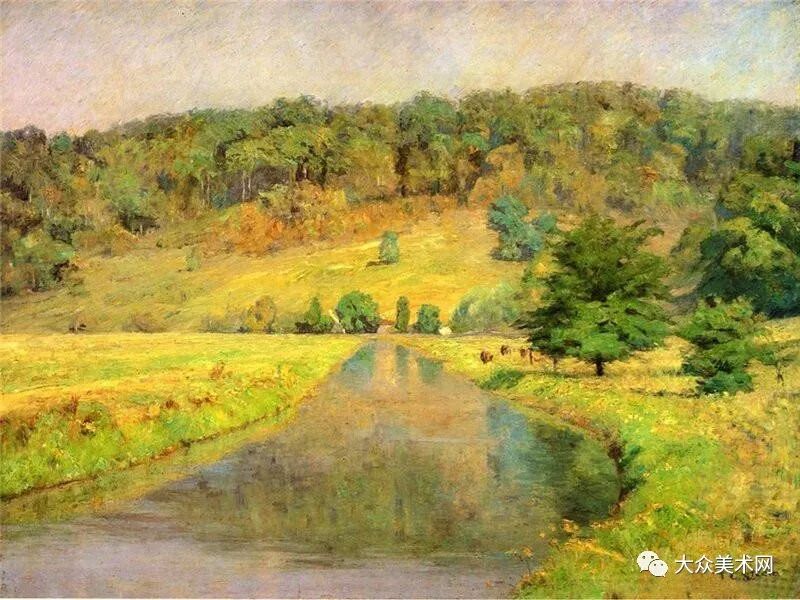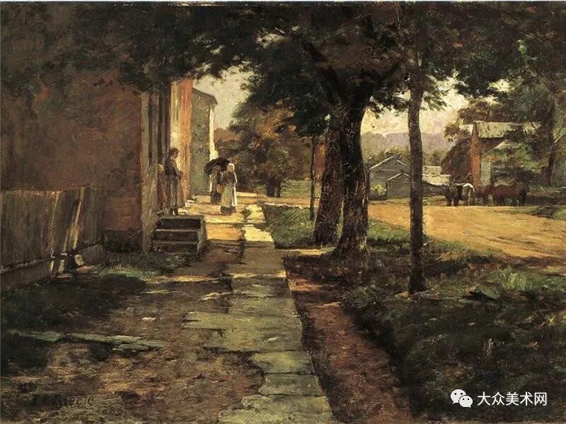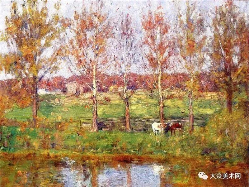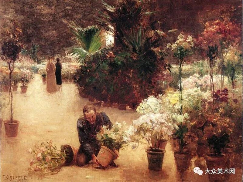 西奥多克莱门特斯蒂尔(Theodore Clement Steele)。美国印象派画家,以擅长印第安纳景观称著。斯蒂尔1847年9月11日出生在印第安纳州的欧文县。1900年他在沃巴什学院获得的荣誉硕士学位;于1916年在印第安纳大学获得誉博士学位。斯蒂尔于1885年经历了显著变化,在慕尼黑一段时间是单调色彩,高对比度。他回到印第安纳后,调色板转方向,一个更美好、更生动的画面色彩出现了。为此斯蒂尔得到的回报,是在1898年买下了位于现在和宾夕法尼亚州的街道的塔尔博特的房子,或称“廷克大厦”,也就是他们所谓的“冬宫”。1926年7月24日在宾夕法尼亚州逝世,享年79岁。