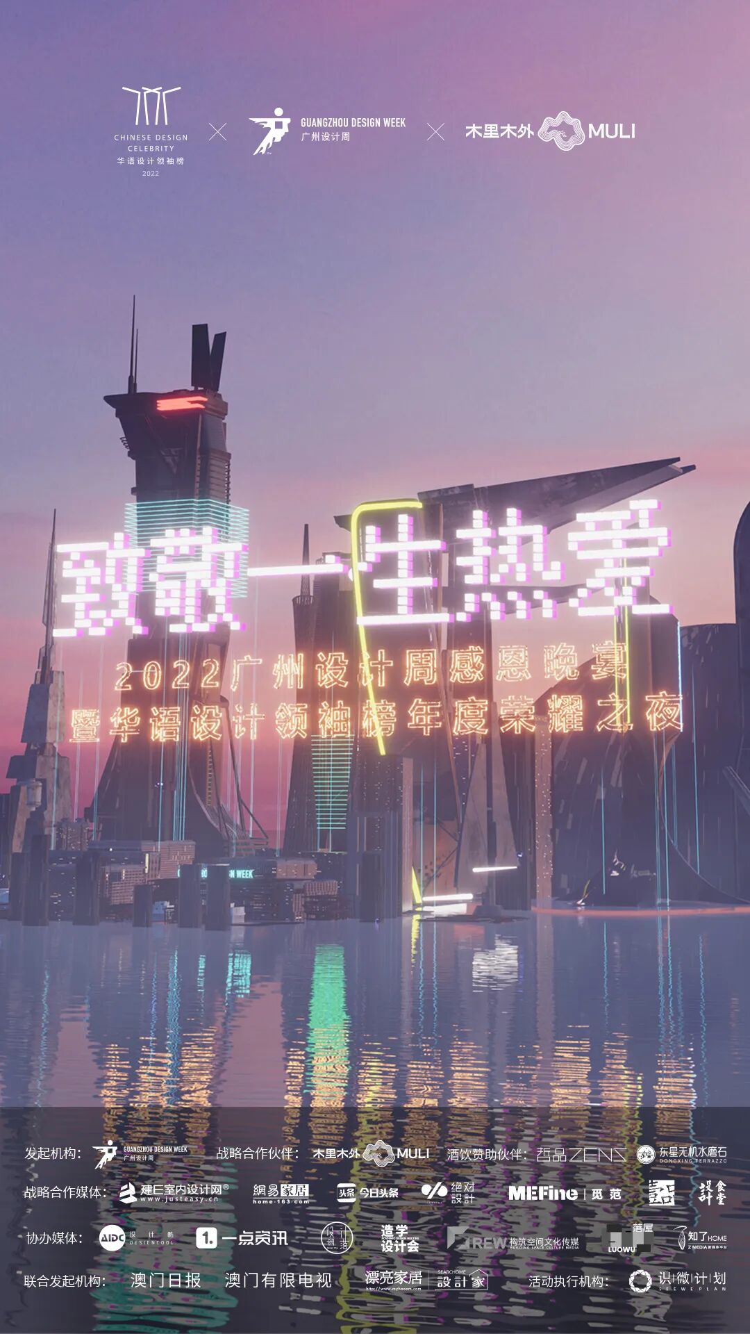 由广州设计周和木里木外联合主办的2022广州设计周感恩晚宴,将以一场盛大的仪式,以聚光灯的荣耀时刻,聚焦那些一生热爱,孜孜不倦的华语设计者,记录他们因理想而热爱,因热爱而持续开拓,见证他们在新的赛道上书写的持续辉煌……届时,感恩晚宴将邀请华语设计的开拓者们到场,与来自全国各地的设计师共同见证华语设计的热爱力量。