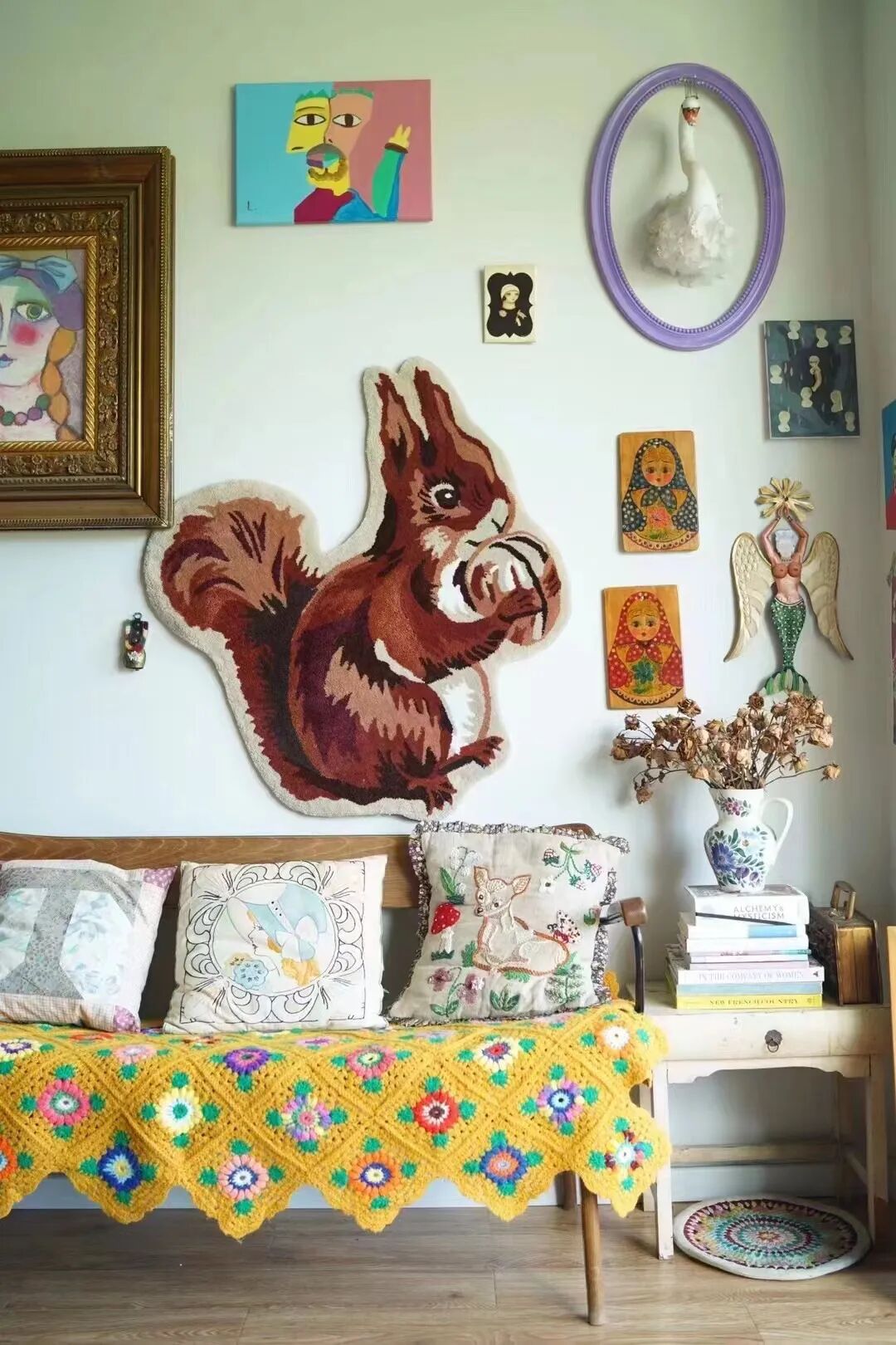 挂在墙壁是装饰画,铺在地板上是毛茸茸的小地毯,