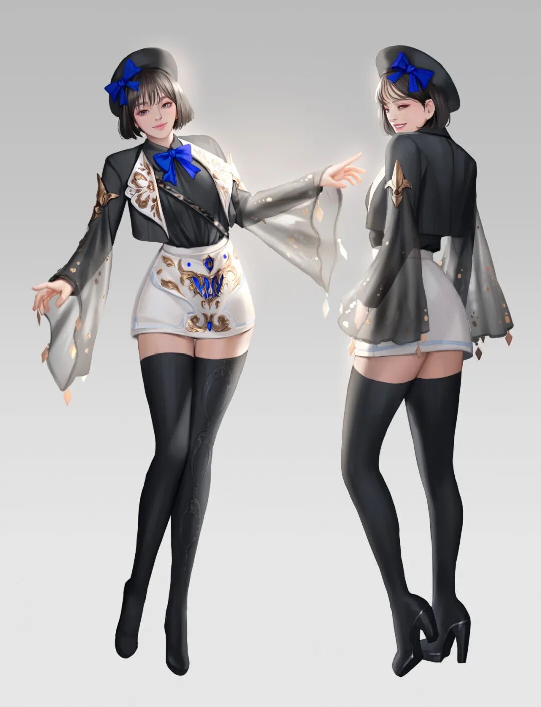来自韩国的原画师,十分擅长女性角色的设计,画风是大家都很熟悉的典型韩式,虽然是常见的美型的脸蛋+巨乳翘臀大长腿,但反衬出该画师扎实的基础,在形体结构和打光上都很出色。