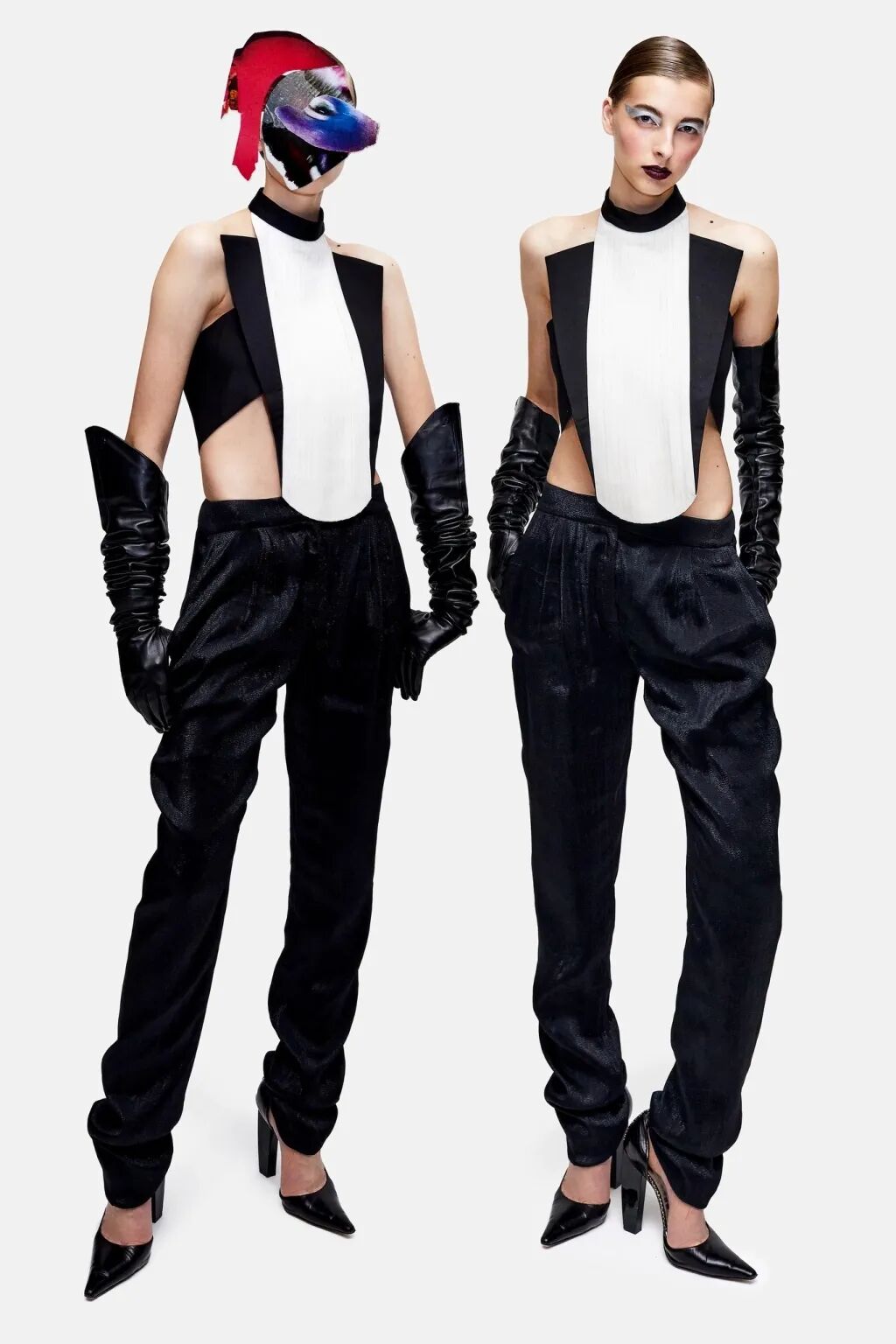 本季,Ronald van der Kemp利用了以往从deadstock 采购的剩余织物,通过超现实主义拼贴手法进行二次设计创作。