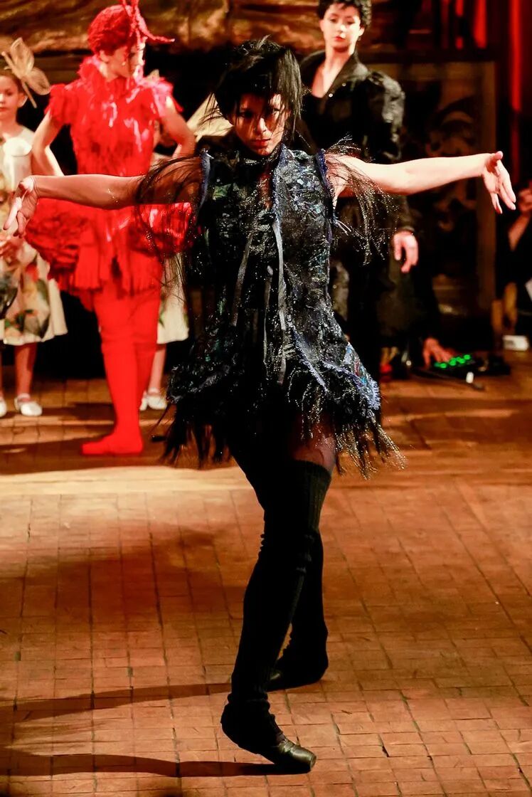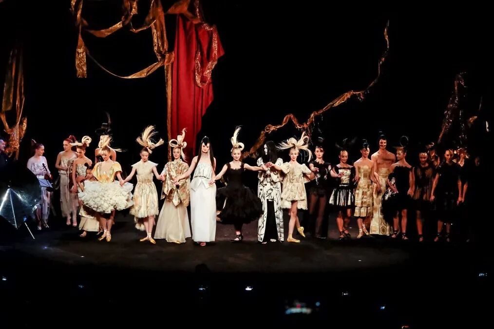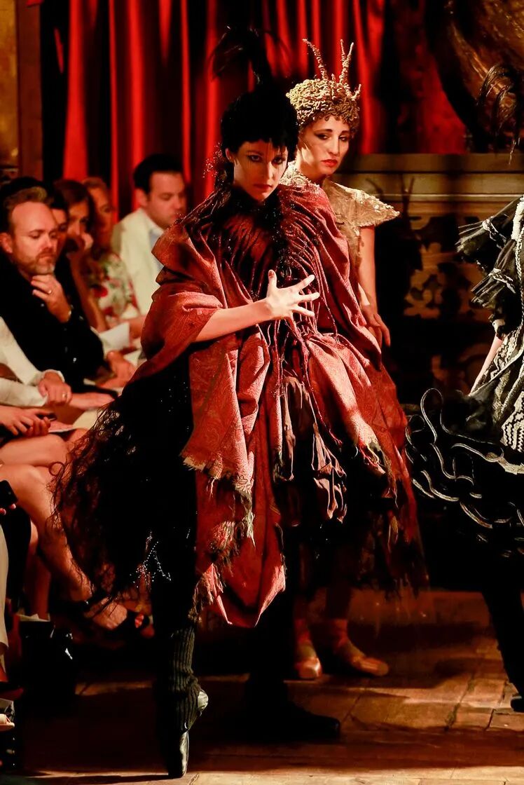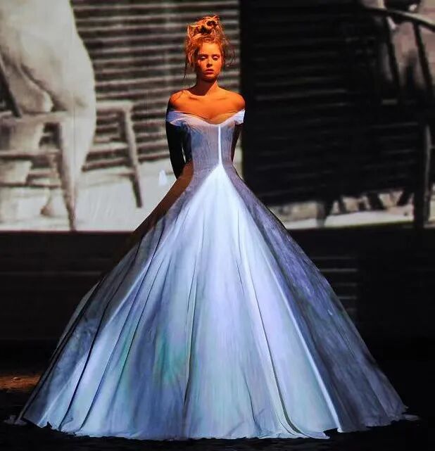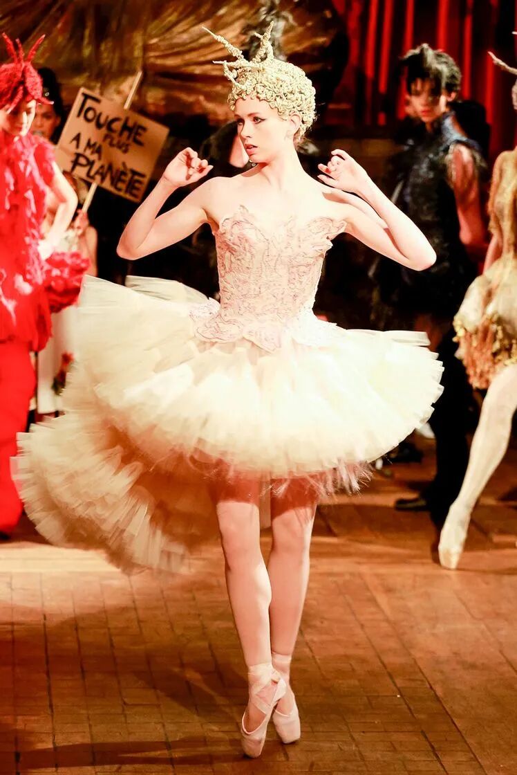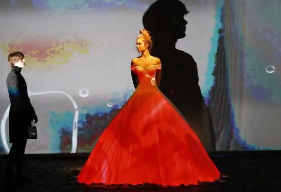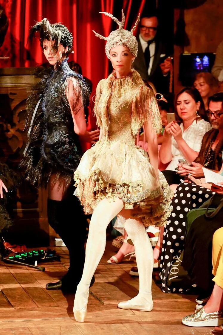 在巴黎高级定制时装周Franck Sorbier以一个全新视角使舞者们轻盈地滑过舞台,动作优雅,几乎像在做梦。配合音乐和布景,整个制作的艺术性使人措手不及,即使从远处,也能看到每件作品的细节,有趣的结构和美丽的色彩选择。
