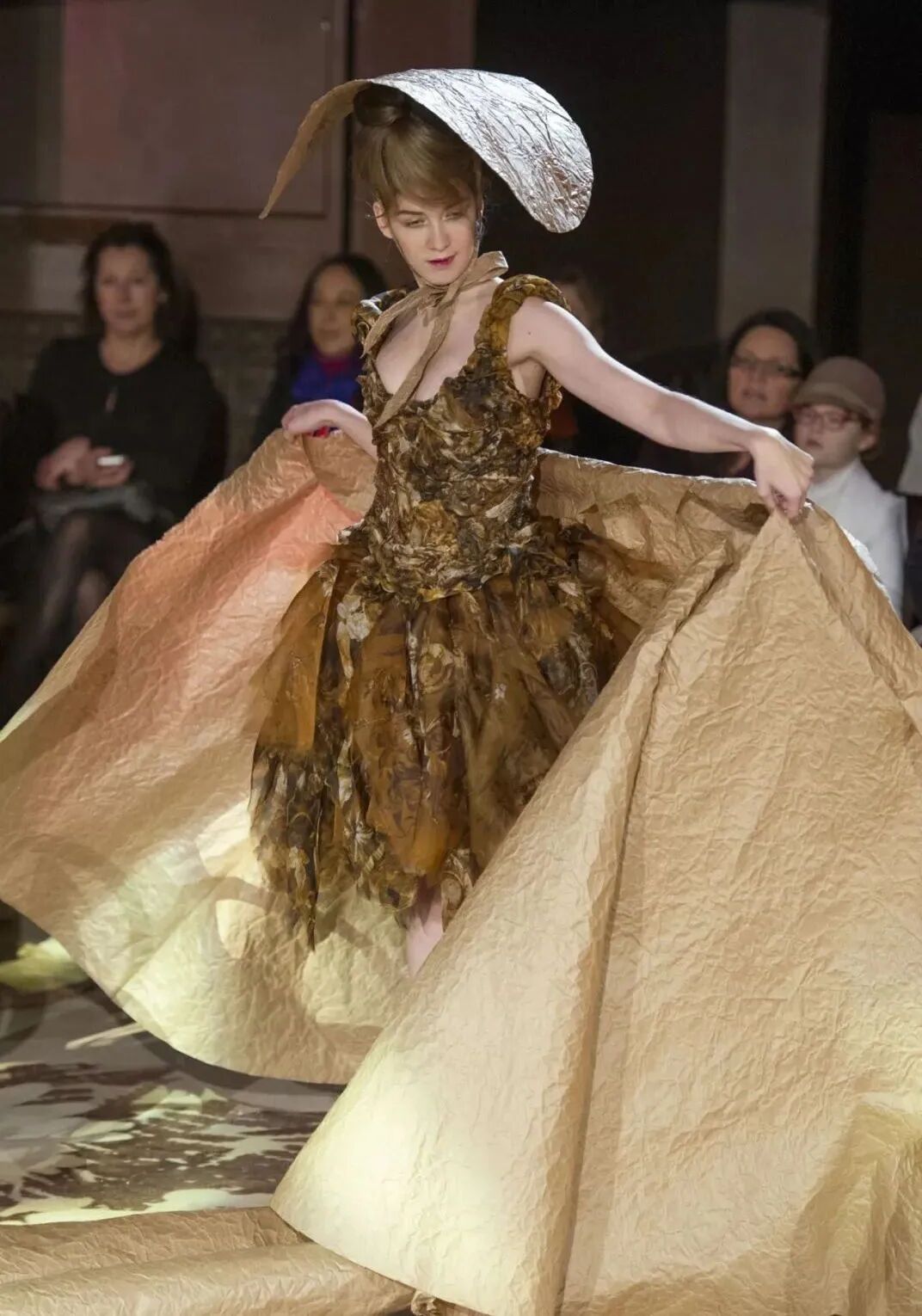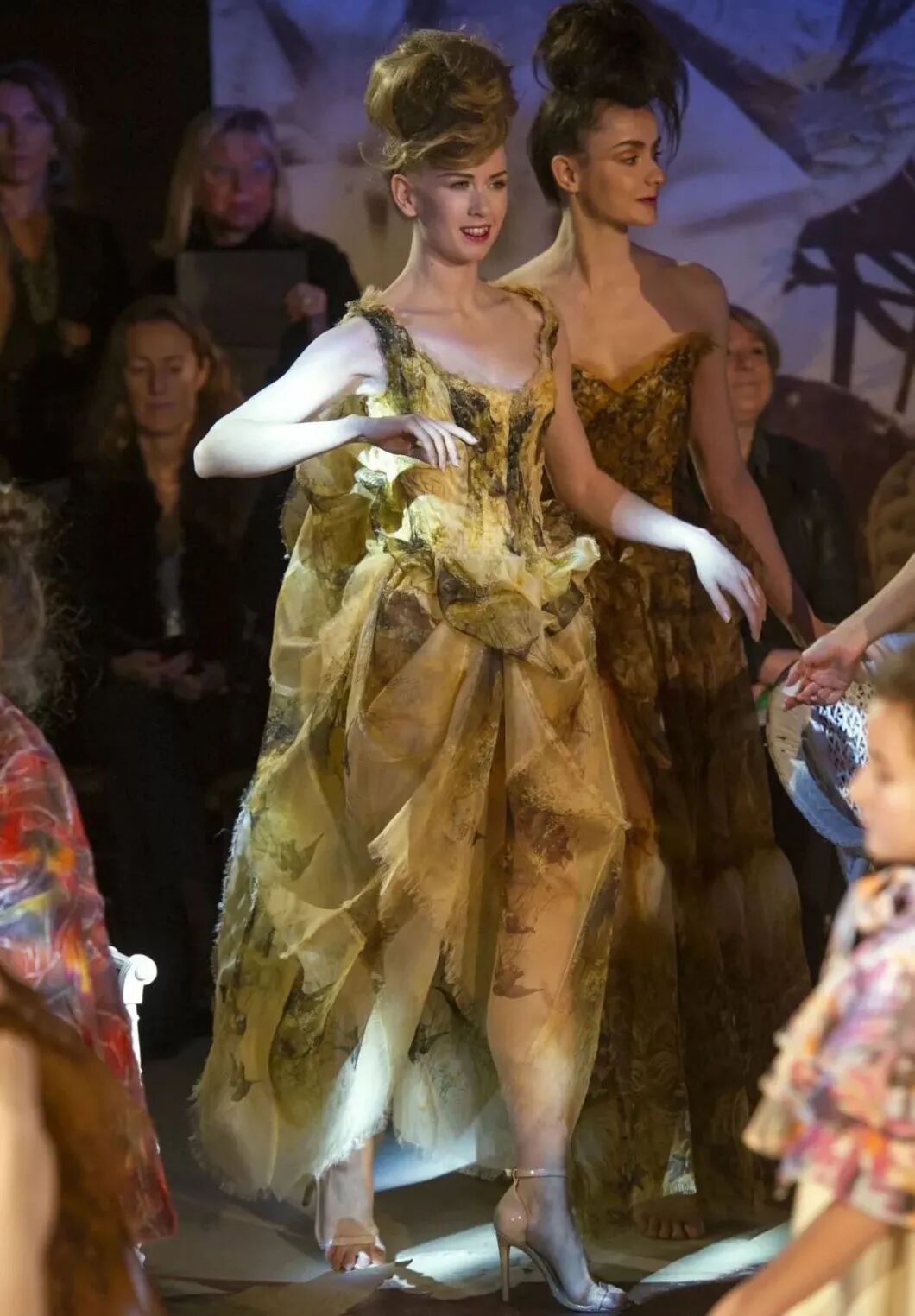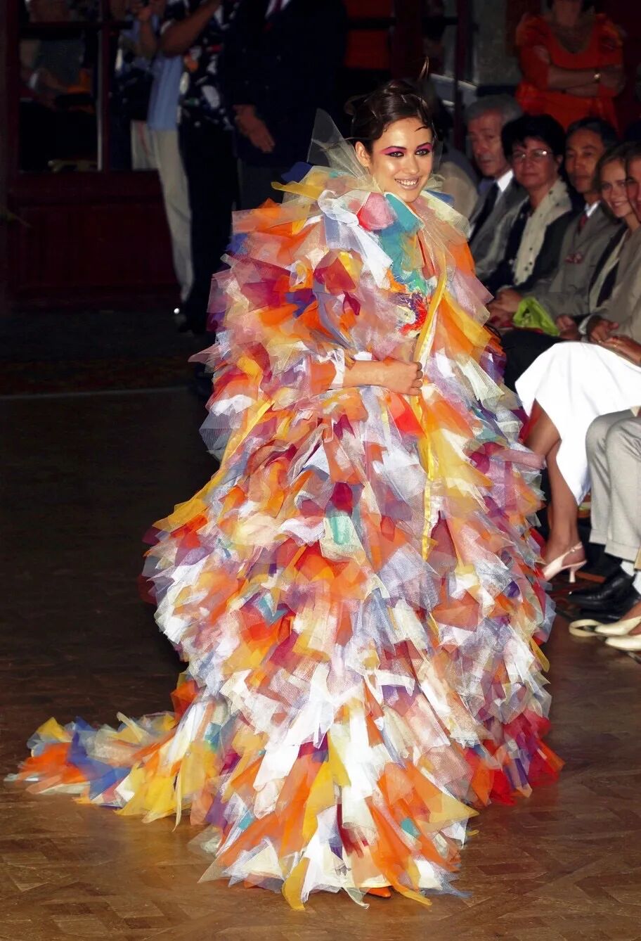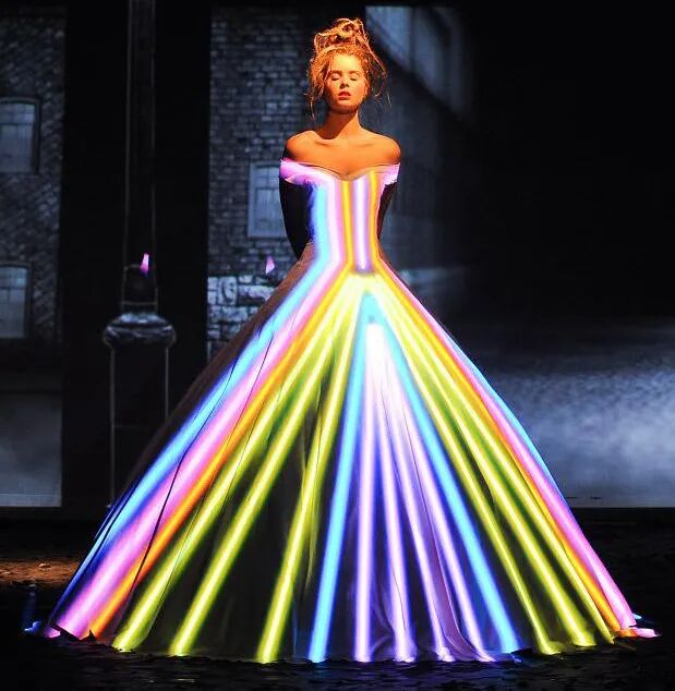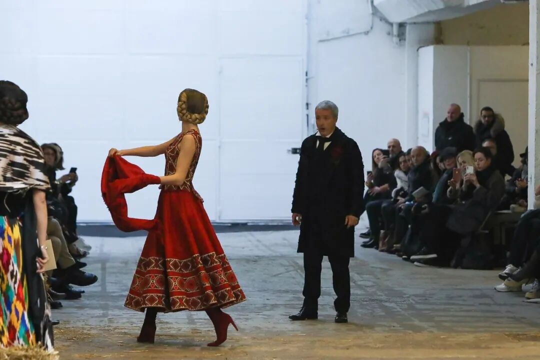 在巴黎高级定制时装周Franck Sorbier以一个全新视角使舞者们轻盈地滑过舞台,动作优雅,几乎像在做梦。配合音乐和布景,整个制作的艺术性使人措手不及,即使从远处,也能看到每件作品的细节,有趣的结构和美丽的色彩选择。