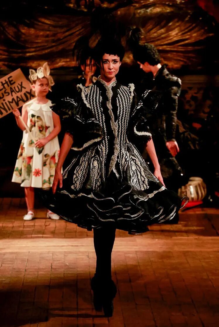 Franck Sorbier在16岁的时候在杂志上看到Dior化妆创意总监,Serge Lutens设计的look,立刻的找到了自己未来为之努力的目标,此后他一直坚持哥特风路线,每一场发布会都是充满戏剧性的表演。