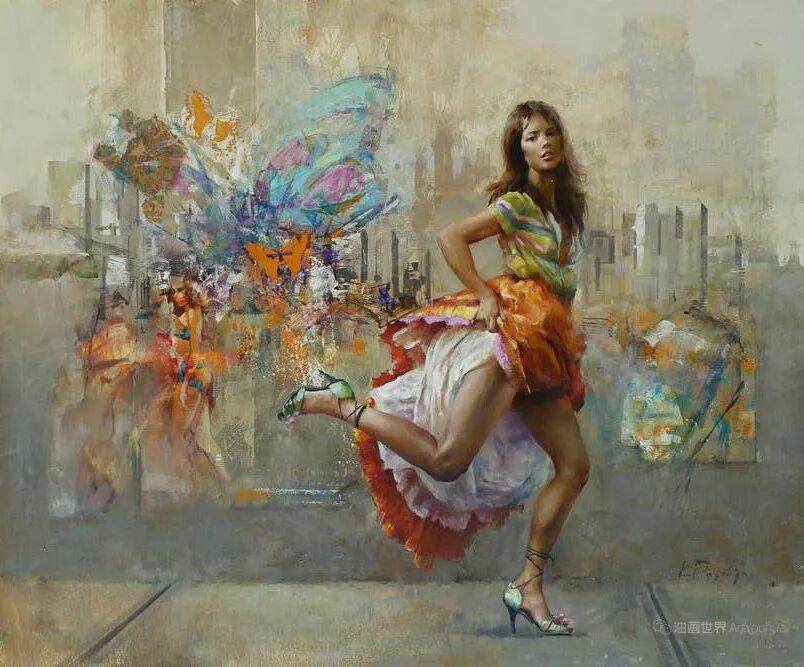 在第一年学习油画的处理问题,但几乎他所有的主要作品的灵感是来自古代雕塑。后期他的重点放在结构和组成的形状上。现在几乎完全以女性形象题材为主,并开始添加一些符号元素进行组合,从而使作品更加梦幻。她是最真实的形式,就像绘画的细节表达的必要元素。