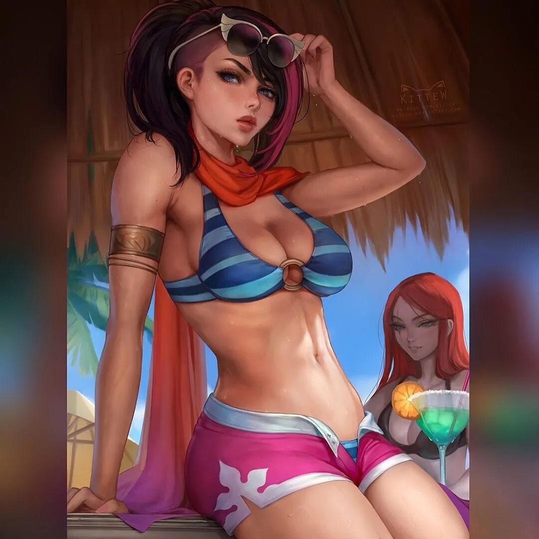 Kittew,来自俄罗斯的画师,其以性感美女少女插画被广大粉丝喜爱。Kittew本人长的也很漂亮,五官立体,皮肤白皙,经常会自己摆拍画画,没有模特自己来当。