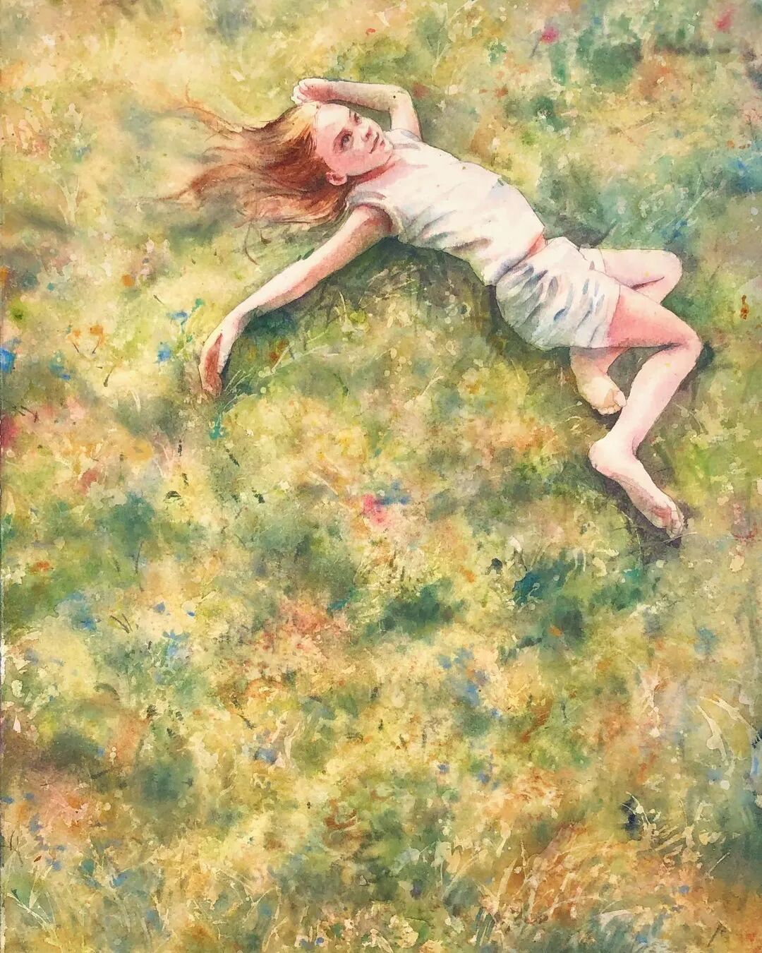 美女艺术家创作梦幻水彩作品,空灵又清澈,长在我的审美上了