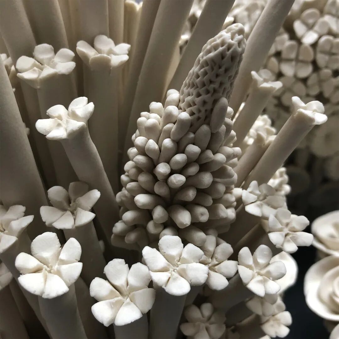 来自伦敦的艺术家凡妮莎·霍格就是其中之一,凡妮莎·霍格创作瓷器作品近十年的时间,瓷器作品主要以复杂的花卉为主,这些复杂的花卉动辄几十,几百个花瓣,每一个花瓣都是凡妮莎·霍格手工雕刻而成,耗费了大量的时间与精力。