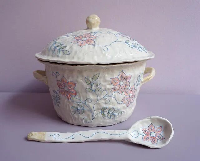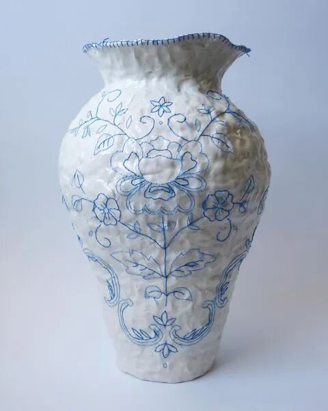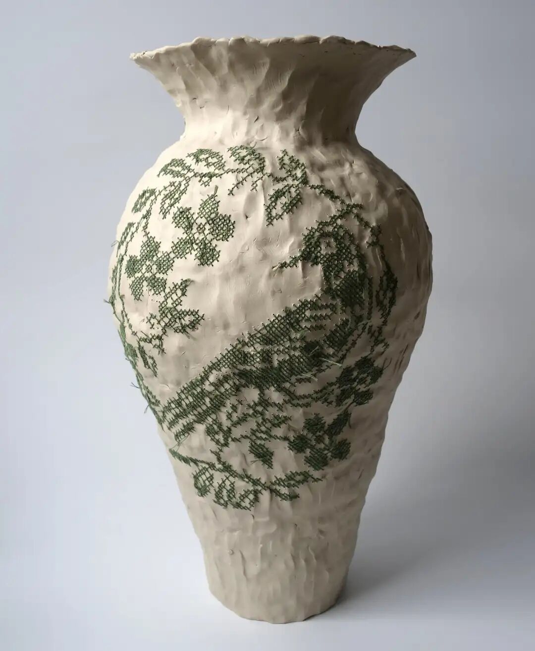 这位艺术家是来自斯德哥尔摩的陶瓷艺术家卡罗琳·哈里斯,是一位年轻的90后艺术家,我们都知道,陶瓷艺术和刺绣艺术都是我们国家历史非常悠久的技艺,而这位艺术家竟然将花卉图案绣在了陶瓷器皿上,让初次看到这种操作的网友惊讶不已:“能在陶瓷上面刺绣,这位美女艺术家的手劲儿是有多大”?