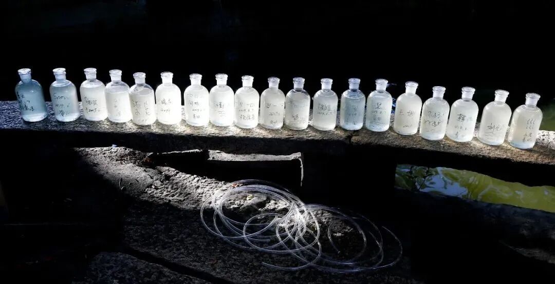 《一口口水》,就是用“倒虹吸”的原理,让每个人都喝一口河水,反复吸水吐水,直至装满500毫升的玻璃瓶为止。一个很简单的动作,却异常考验大家,因为河道的水质污染,会让参与者产生心理抗拒。
