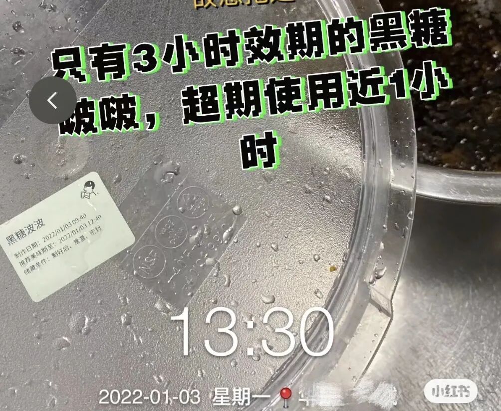 根据该博主单方面提供的信息显示,一款早上10点过最佳赏味期的草莓冻,一直被用到了下午2点多;另外一款只有3小时最佳赏味期的黑糖波波,超期使用接近1个小时。