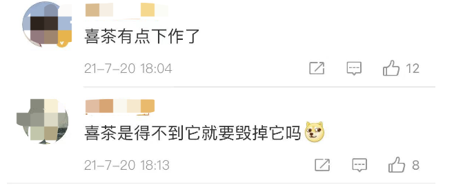 评论区,不少网友愤愤不平,表示:“喜茶有点下作了”。