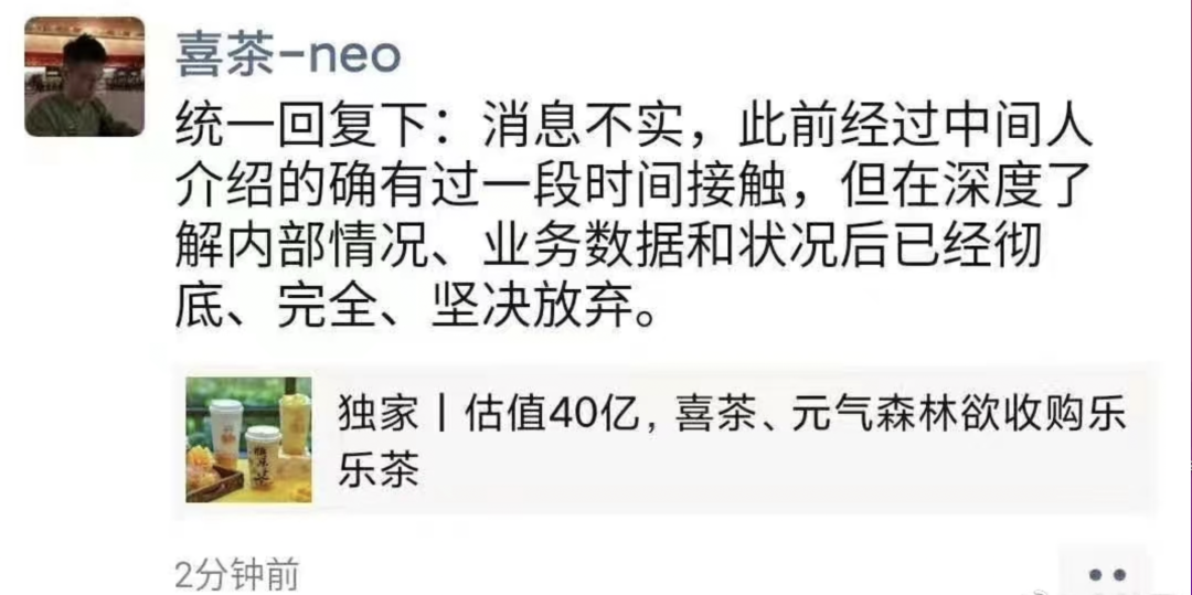 元气森林和喜茶都欲收购新式茶饮品牌乐乐茶,双方都非常看重乐乐茶的渠道价值,并给出了40亿元估值。
