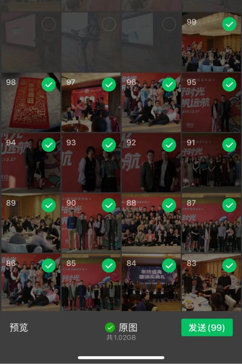微信8.0.27正式版 iOS 平台用户已经更新,更新后亲测发现,微信支持单次发送 99 张图片了,之前最高单次发送照片数量为 9 张。以后各位设计师就不用担心发给客户的合同,效果图等照片需要一批一批的选,顺序也不会再出错;年会拍的照片也可以一次性分享给部门同事啦。