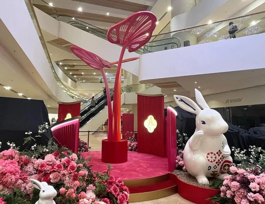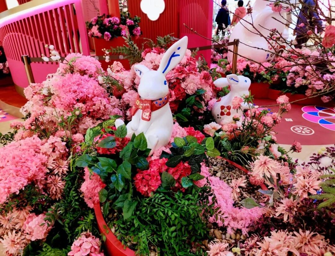 东港城现正举行新春花展会,场内还设有「花满东港·玉兔迎福」新春装置,可以与展会一同打卡。新春主题装置中有多个点位,当中包括「樱」木神社、「樱」色园林、乐也陶「兔」,「运转乾坤九宫格」等。这个新年企盼所有人行个大运,「兔」气扬眉!