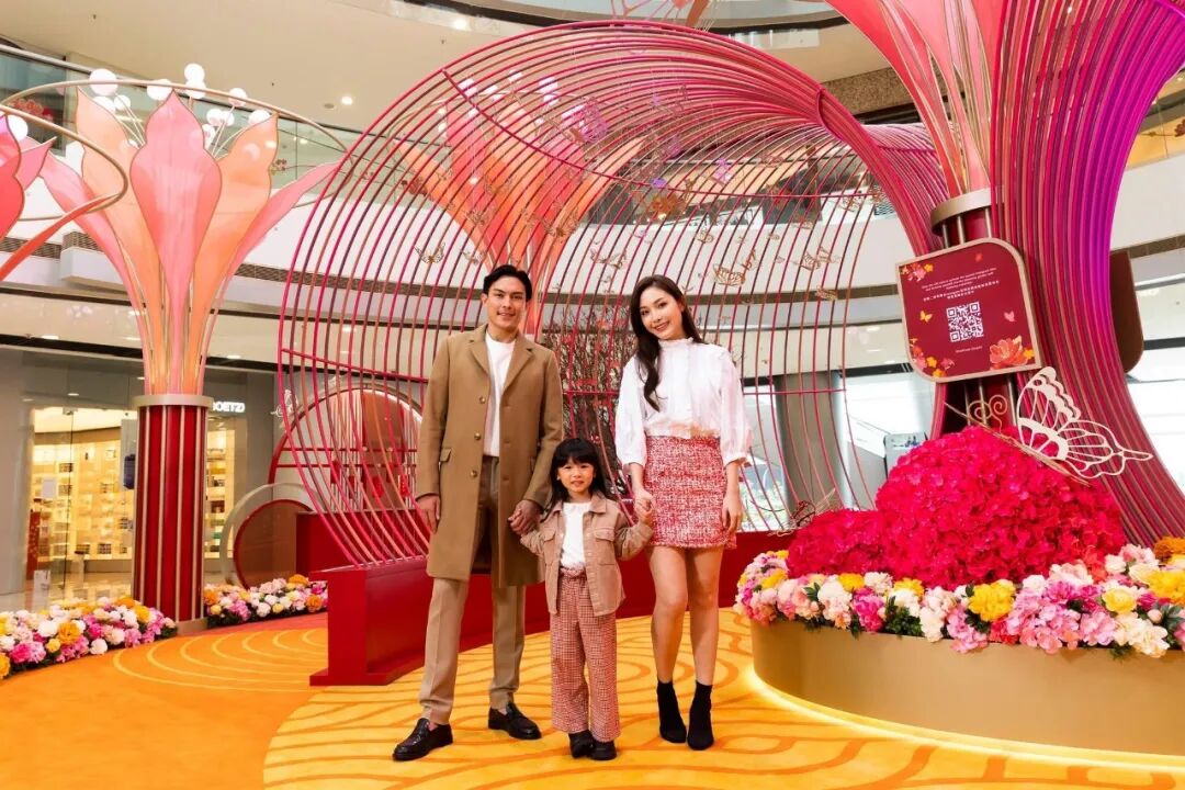 庭园用上应节的桃红色搭配夺目橙黄两色作主调,园内花卉色彩鲜艳亮丽,特别用上带有吉祥寓意的各式年花,四周挂着翩翩起舞的蝴蝶。加上悬浮于半空、犹如扑翼蝴蝶的流线形装饰,在中庭的阳光映照下,形成独特的光影效果,勾勒出繁花似锦、蝶舞翩翩的意境,令四周弥漫生机盎然的春日气息。