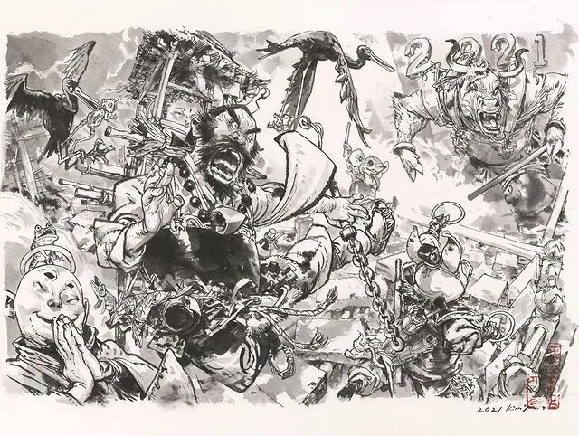 在很多不了解金政基的人眼里,第一次见到他的作品,或许会误以为他是一个画漫画的漫画家。