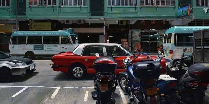 他是将多元化创作手法完美融合,作品主题将写实主义、超现实主义和批判现实主义相互交织。在创作的过程中,宏观的构图、空间和透视成竹于胸,整个世界凝结于笔端,通过极致的细节准确再现。