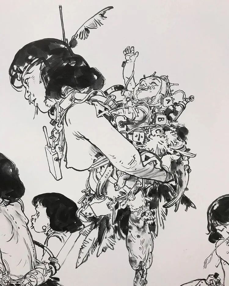 每一份速写作品,都能称为“大作”。这也是金政基能被誉为美术界“传奇人物”,与天野喜孝、村田莲尔及寺田克也齐名的原因。