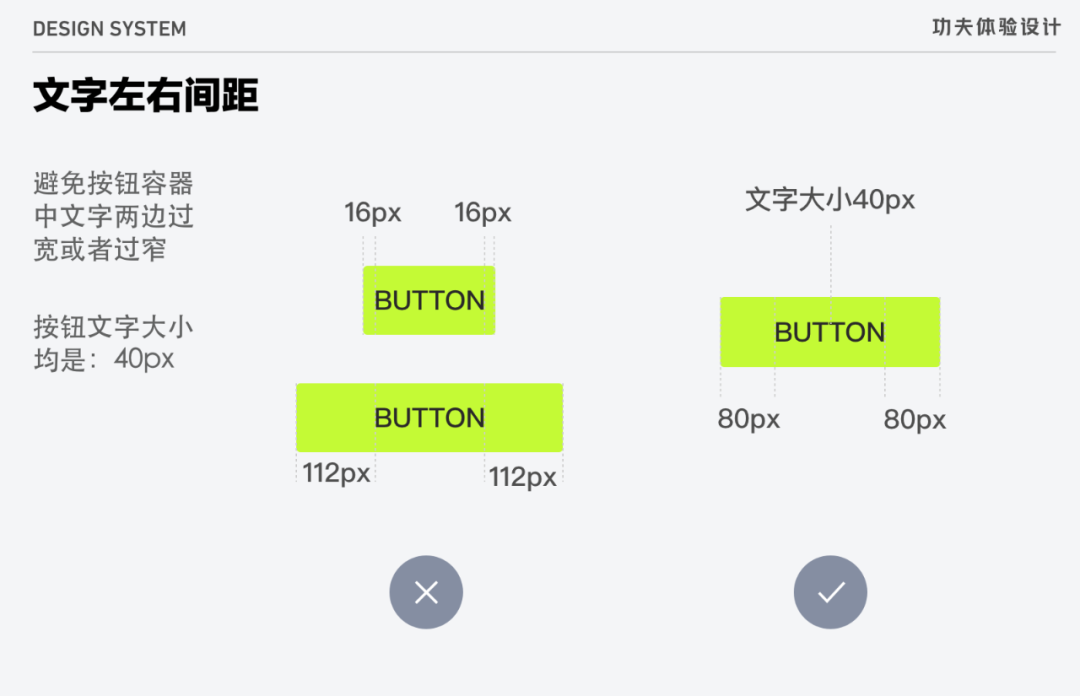 来看个例子,当文字大小是40px时候,那么文字距离按钮两侧边距就是80px,如下图所示。