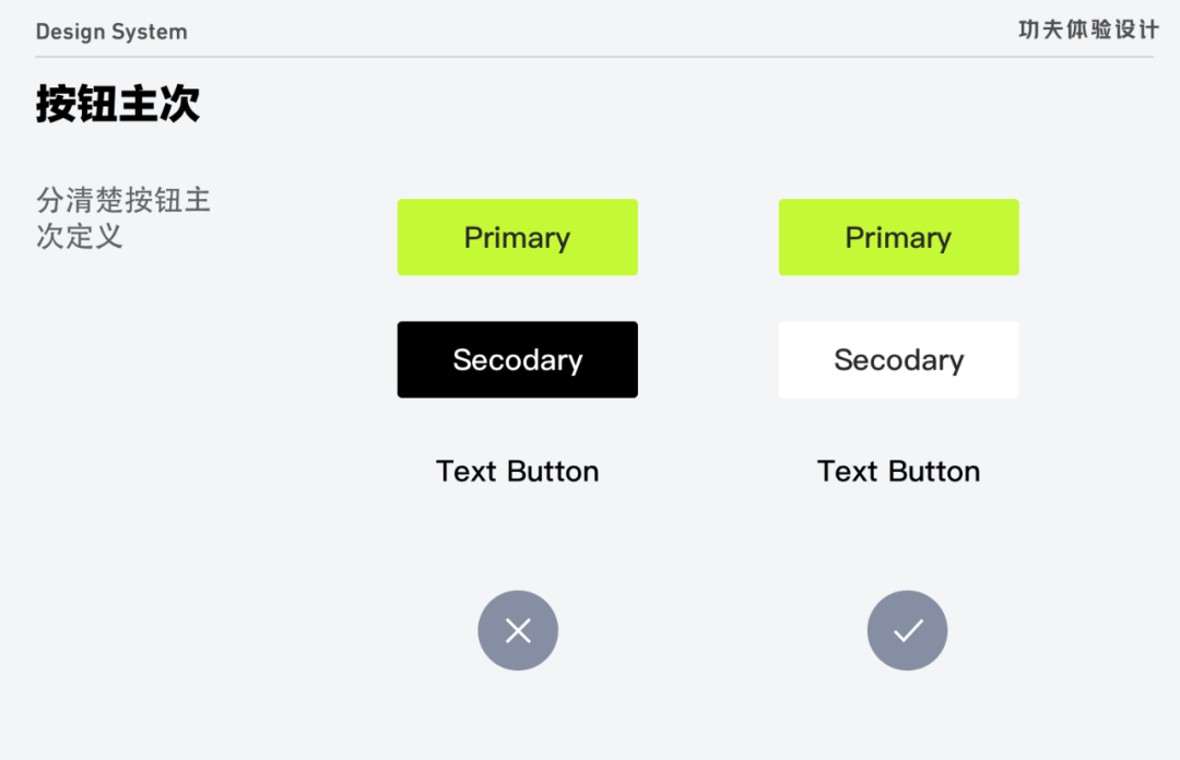 如上图,左侧按钮一级和二级按钮颜色都很重,分不清楚主次,右侧的主要按钮和二级按钮视觉重量不同,主次分明。