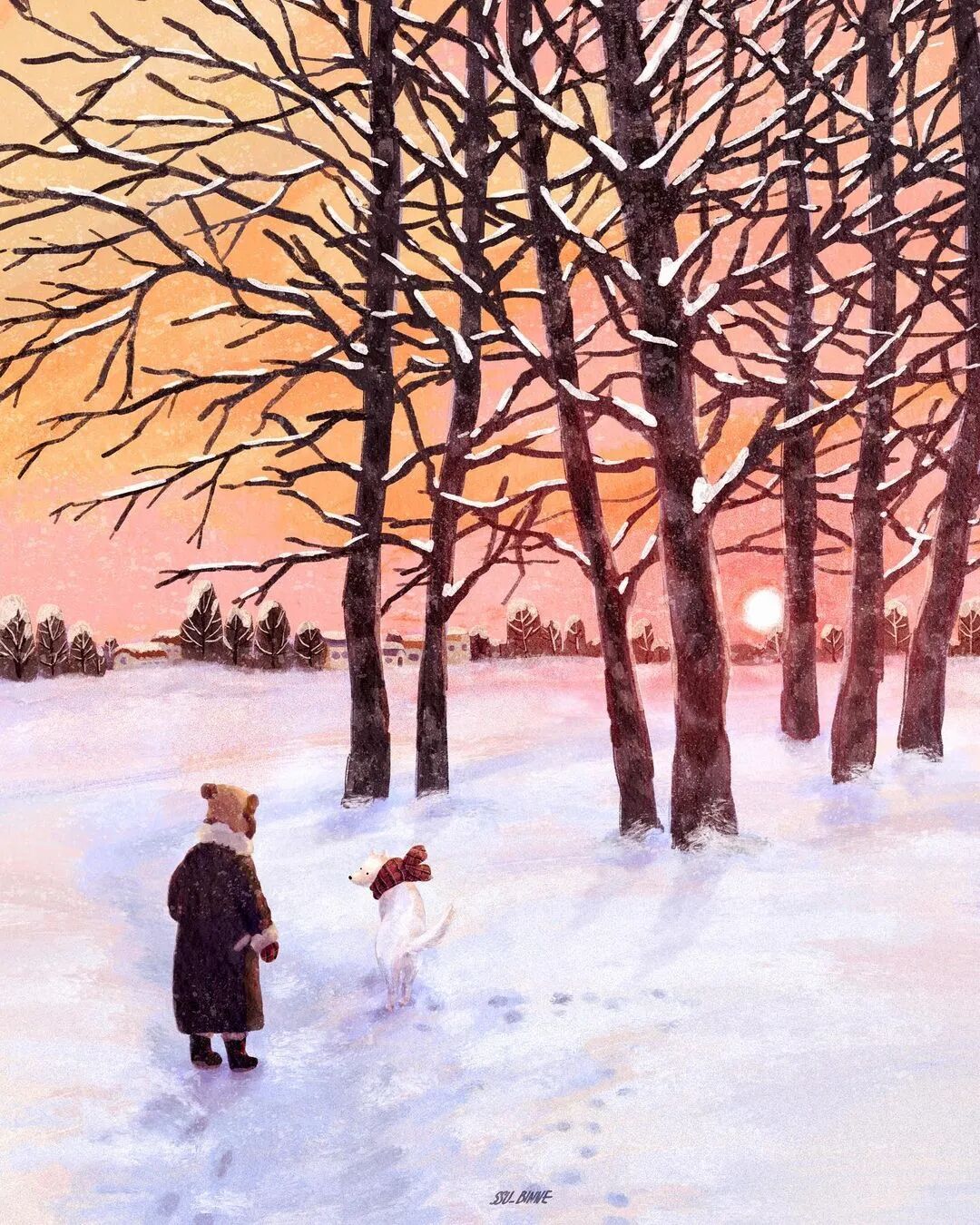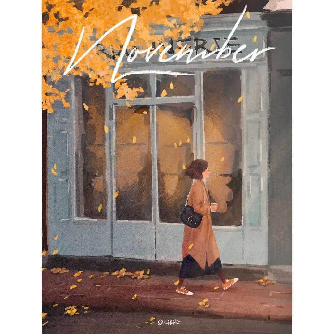 分享韩国画师@ssu_binne 一组最新的日历插画,记录四季的日常,光影和配色都让人感觉舒服温暖~