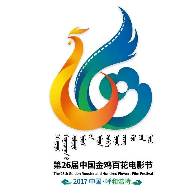 第31届中国电影金鸡奖(第26届中国金鸡百花电影节闭幕式)为金鸡与祥云组合成的阿拉伯数字“26”,简约大气,彰显时代特色。右侧花朵形状的祥云图案与蓝绿色的经典配色体现了呼和浩特美丽的蓝天、白云、绿草地景色,飘扬的电影胶卷造型如同飞扬的羽毛象征中国电影勇往直前,同时体现了呼和浩特人民豪爽、热情的性格特点,寓意深刻。