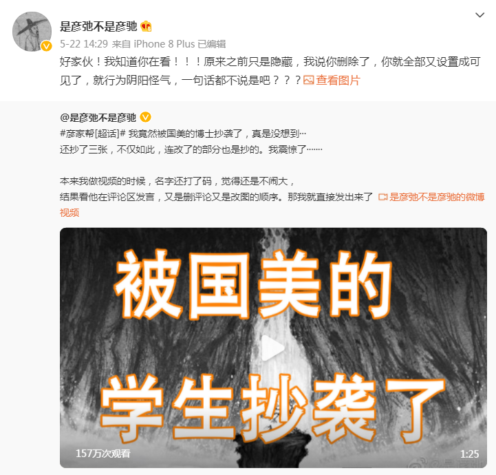 国美的博士抄袭了彦驰的作品