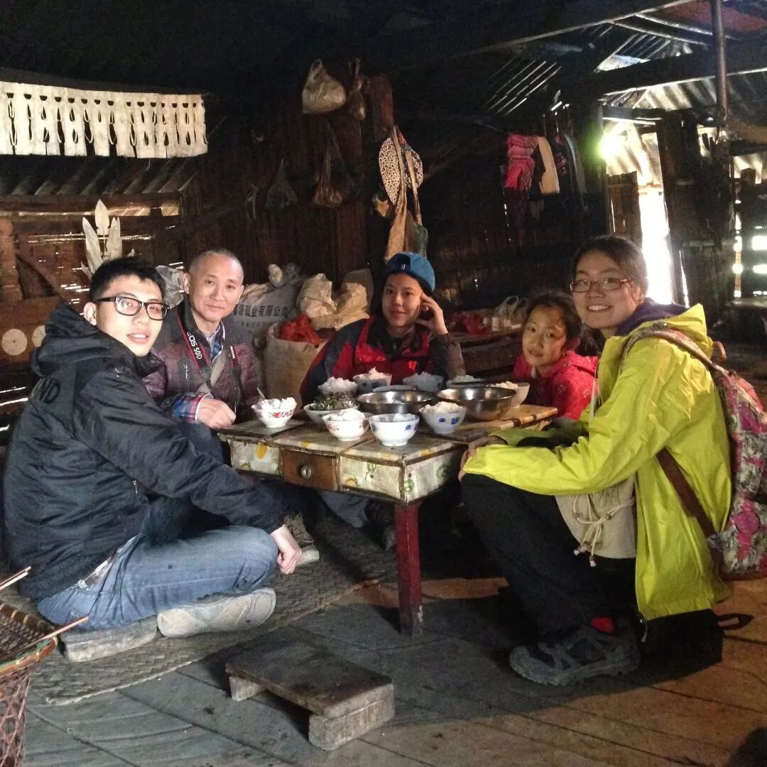 2014年,乔晓光带领中央美术学院研究生在云南澜沧龙竹棚寨考察拉祜族民间剪纸。