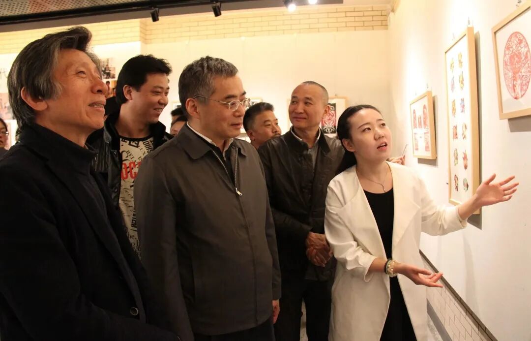 2015年,时任文化部副部长项兆伦、中央美术学院院长范迪安参观指导首届“非遗保护与现代生活:中青年非遗传承人交流实践活动”成果展览。