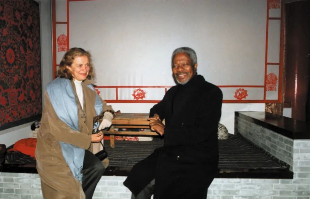2000年,时任联合国秘书长安南及夫人参观北京民俗博物馆(东岳庙)“中央美术学院民间美术展”。