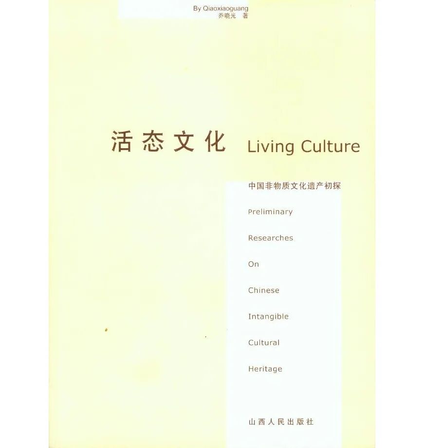 《活态文化:中国非物质文化遗产初探》。基于自20世纪90年代起,持续11个春节前往黄河流域的考察行,乔晓光教授于2003年提出“活态文化”的方法论并出版。2004年获教育部中国高校第四届人文社科研究优秀成果(艺术类)三等奖。