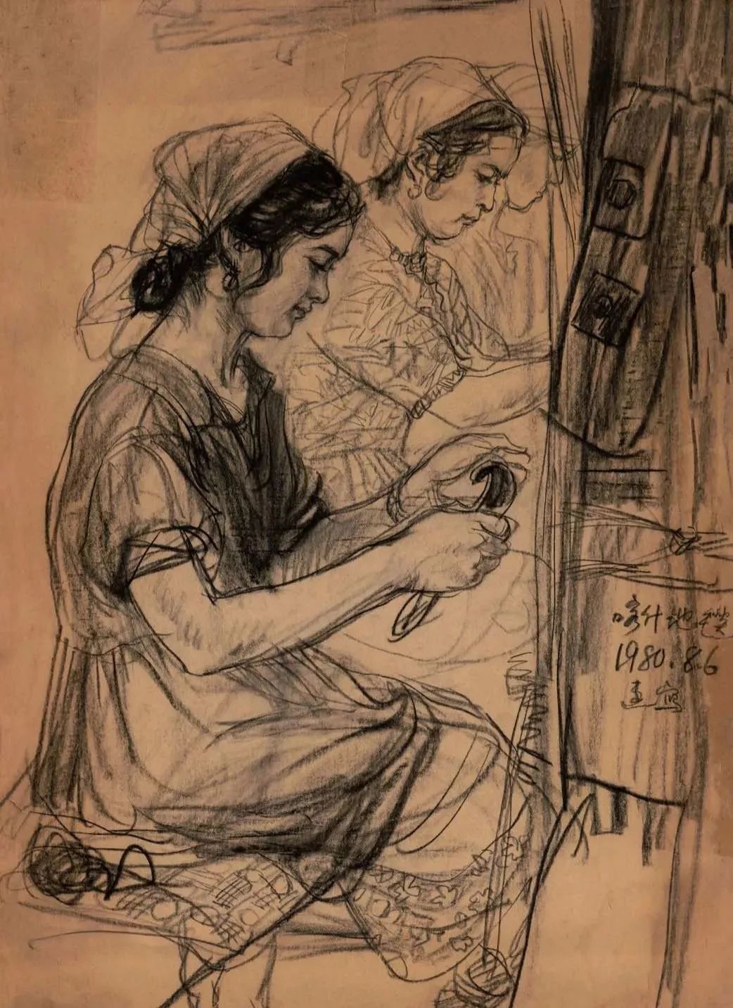 ▲新疆喀什地毯厂维吾尔族女工(1980 年)